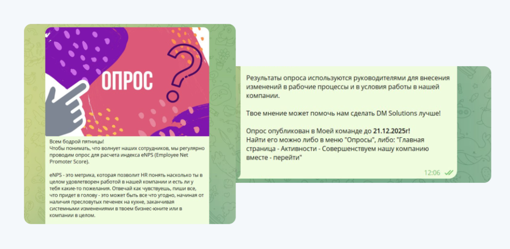 Опросы перестали быть формальностью — это главный инструмент сбора обратной связи. На этой неделе стартует очередной eNPS, и он всегда эффективен: дает реальные данные о том, что происходит в коллективе, где нужна помощь и какие изменения необходимы.