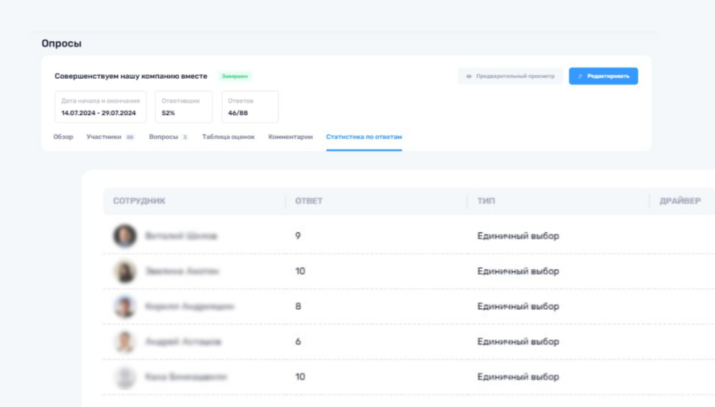 Плюсы:В этом году мы вывели использование опросов на совершенно новый уровень. Мы перенесли в них всё: от классического eNPS и оценки инструментов коммуникации до таких практических вопросов, как «У вас есть техника от компании?».