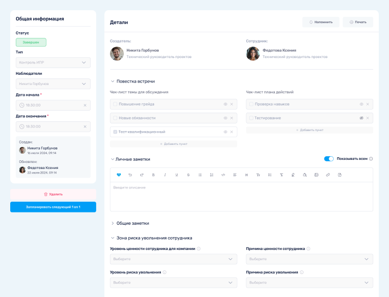 Постепенно подключались инструменты оценки эффективности, адаптации, развития, Индивидуальные планы развития (ИПР) и геймификация для повышения вовлечённости: Вопрос дня и начисление баллов – как подготовка к запуску корпоративного магазина. Для тимлидов организовано обучение проведению регулярных 1-on-1 встреч на платформе.